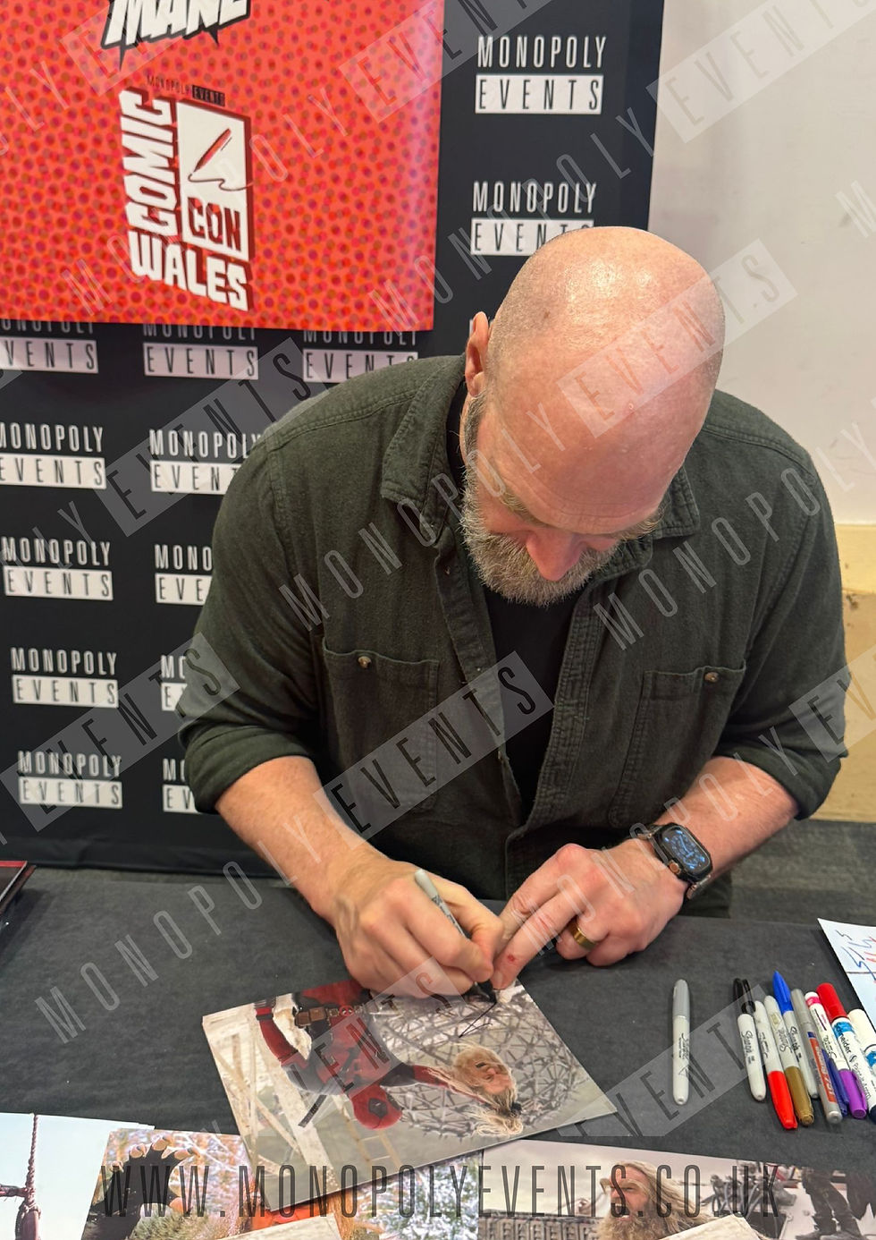 All of our merchandise is certified in-house and each autographed item receives our three-piece authentication. If your item has the Monopoly Events COA you can buy in confidence knowing this was done first hand by Monopoly Events at our own show, and is a legitimate and genuine signed item, with proof pictures in almost every case. The guests appearance at the show can easily be verified by an online search of the event and guest, assuring you that you are buying a genuine item, from one of the world’s most reputable companies, who book celebrities into their shows on a weekly basis.
