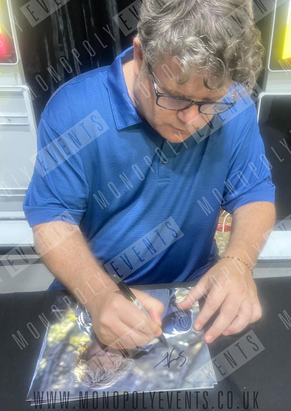 Our signings are done in person at our own shows, the autograph you receive may differ slightly in colour from the image we use to advertise it due to screen resolutions etc. If we have more than one signed item in stock, the autograph may not be the one in the picture, or in the exact same place as the autograph in the image we have used to advertise it. If there is any major deviation in the autograph appearance ie placement, size, colour etc, we will email with images for approval before we post your item. All of our flat images are reproduction prints and not originals unless stated.